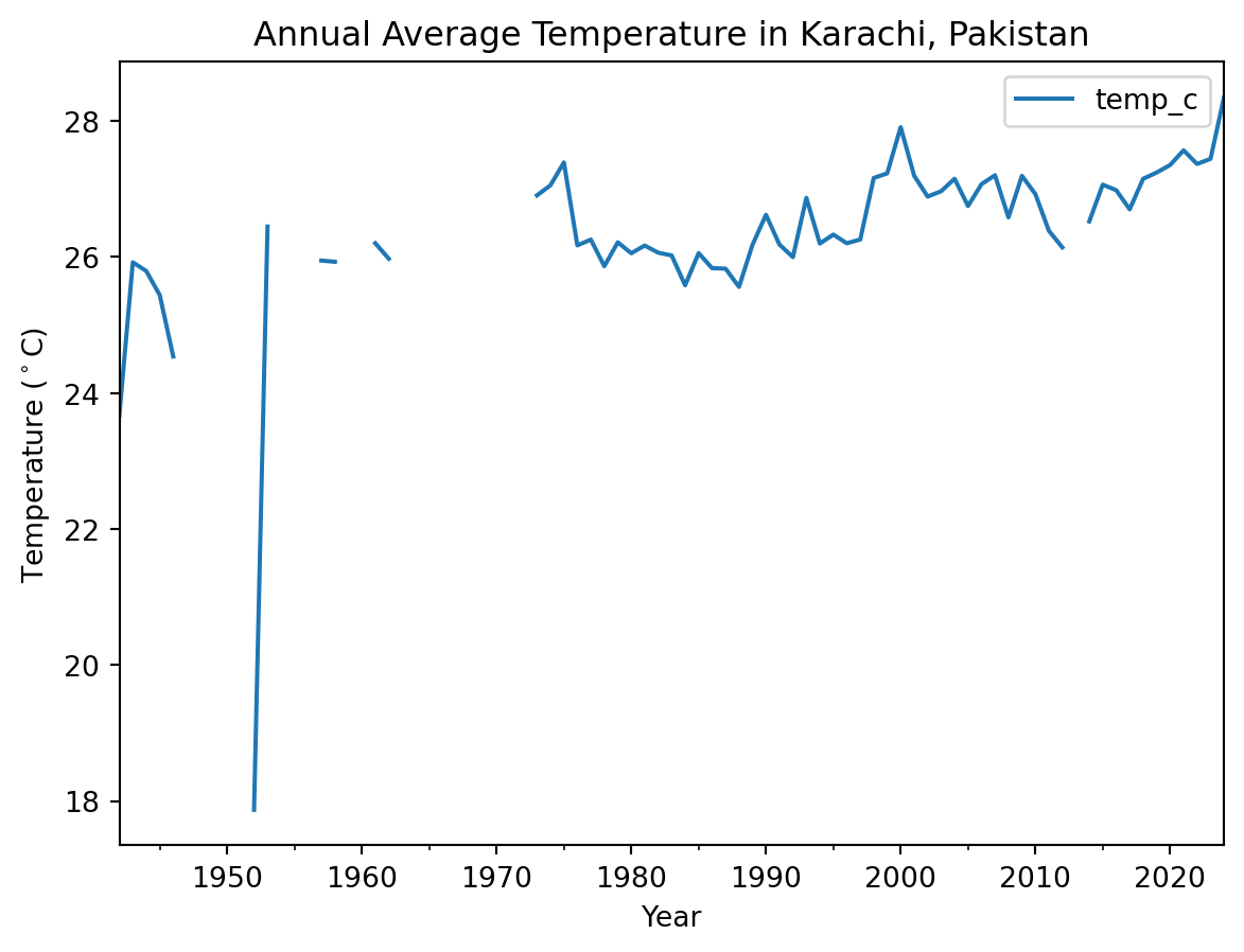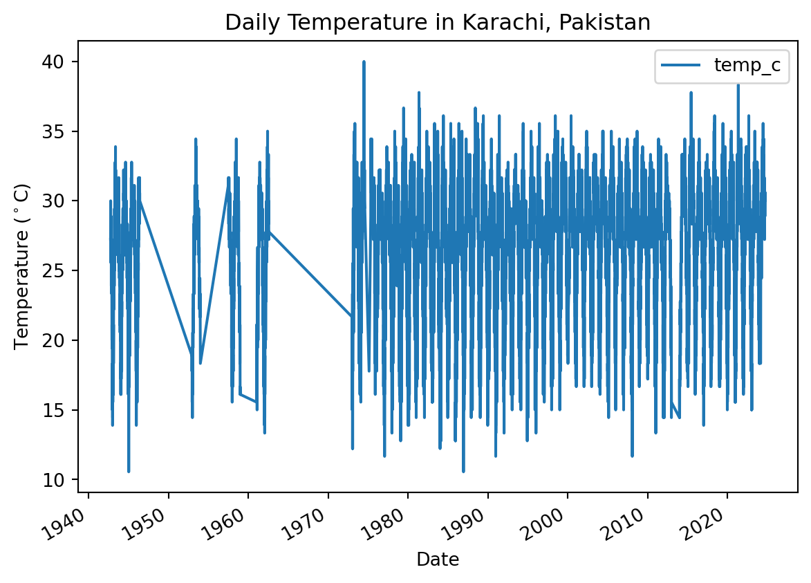 Higher highs, lower lows, storms, and smoke – we’re all feeling the effects of climate change. In this workflow, you will take a look at trends in temperature over time in Karachi, Pakistan.