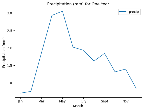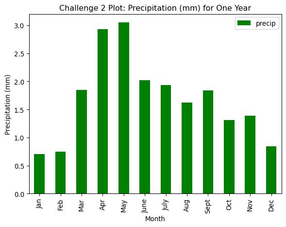 title="Challenge 2 Plot: Precipitation (mm) for One Year",
